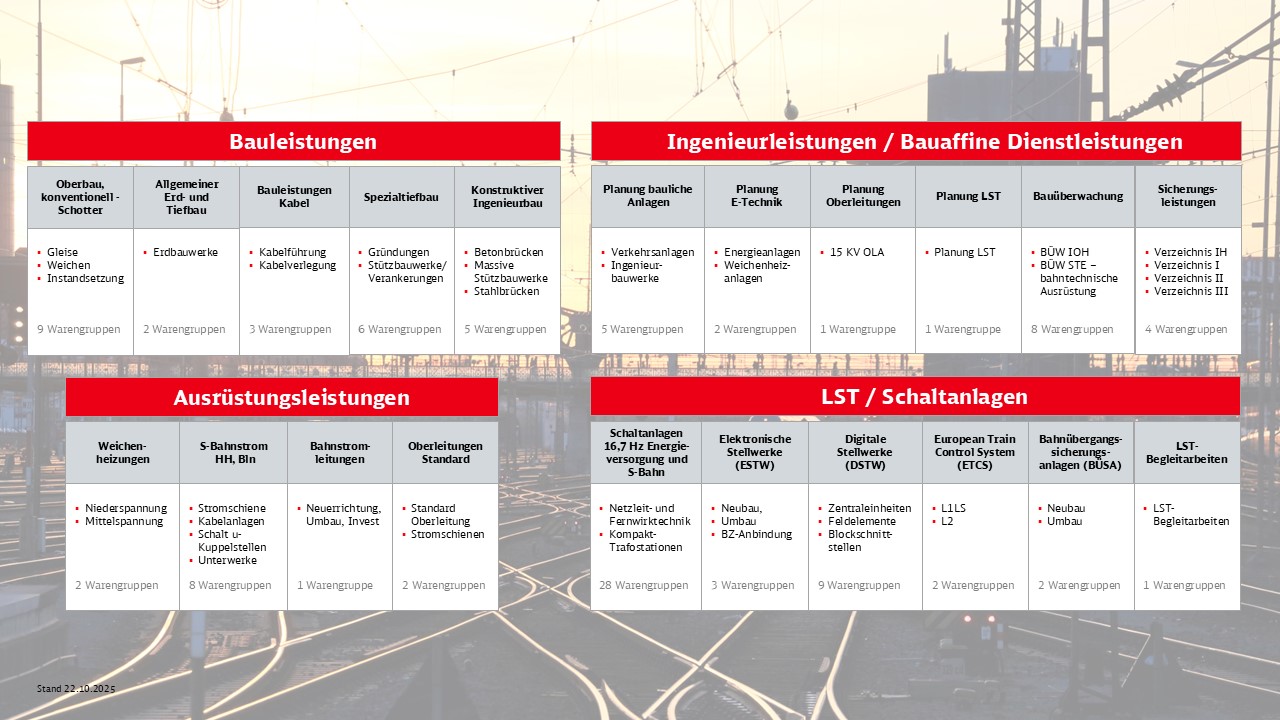 Im Bereich Beschaffung Infrastruktur erfolgt in bestimmten Warengruppen die Eignungsprüfung der Lieferanten/Bieter bereits vor der Vergabe. Ein solches „Präqualifikationsverfahren PQ-Bahn“ ist somit Zugangsvoraussetzung für die Teilnahme an vielen unserer Vergaben.